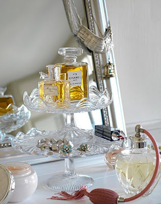 Achei ótima essa ideia de usar aqueles acessórios de mesa na decor da penteadeira, uma ótima opção para guardar seus perfumes ou esmaltes!